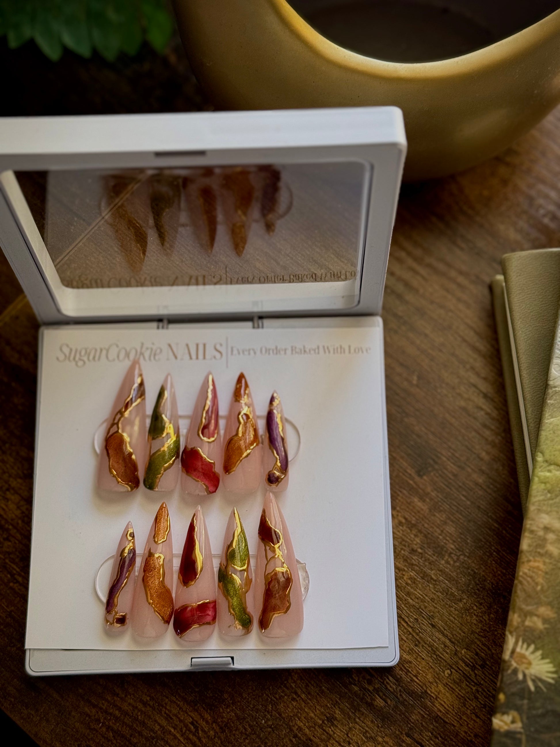 Assorted Autumn Inspired Cateye Mix on a Nude Base with Gold Line Detail
